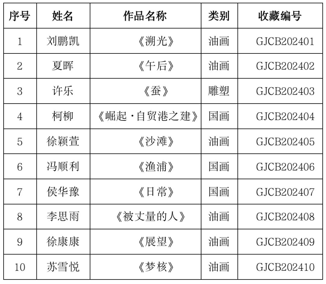 2024年6月14日,2024届毕业生优秀美术作品收藏仪式在田家炳楼举行,有10件毕业作品被收藏,涵盖了油画、国画、雕塑等艺术门类。