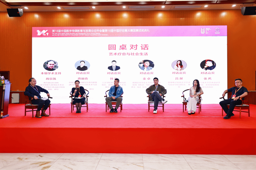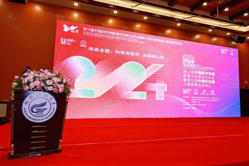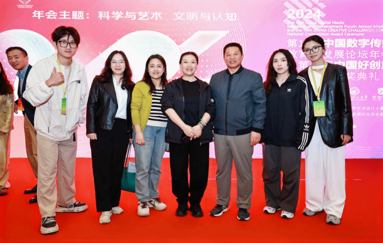 2024年11月1日—3日,第18届中国数字传媒教育与发展论坛年会暨第18届中国好创意暨全国数字艺术设计大赛国赛颁奖典礼在桂林隆重举行。公司获奖师生代表唐丽春教授、邓晰副教授、徐扬副教授、裴彦西、徐蓉蓉同学参加了本次颁奖典礼。