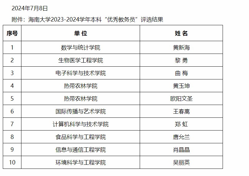 近日,公司教务处发布《2023-2024学年本科“优秀教务员”评选结果公示》,公司王春嵩老师榜上有名,获得表彰。