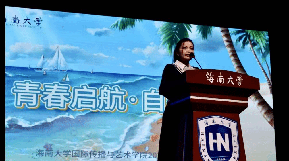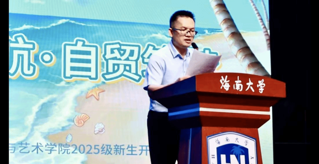 教师代表、音乐表演专业副教授罗晓海勉励新生在追寻艺术与真理的道路上,仰望星空,脚踏实地。在校生代表、2022级音乐表演专业本科生蒲彩凤向新生分享了学业规划、校园生活等方面的经验;新生代表、2025级国际新闻与传播专业本科生保鑫表示,作为与海南自贸港共成长的一代,将尽快融入新集体,勤奋学习,实现理想。