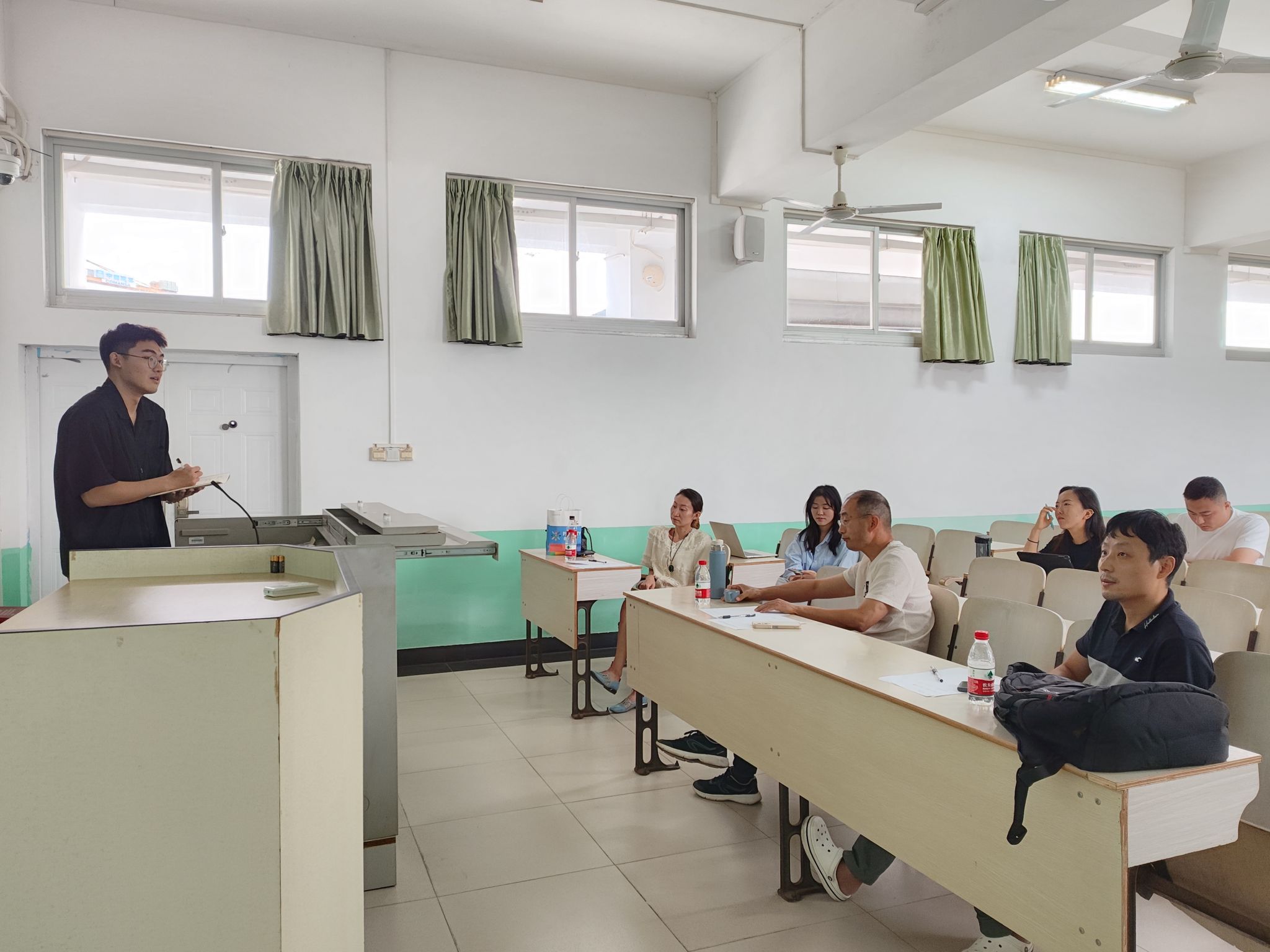 中期考核答辩由同学从课程学习、参加学术讲座情况、文献阅读情况及个人思想状况四个方面进行汇报。