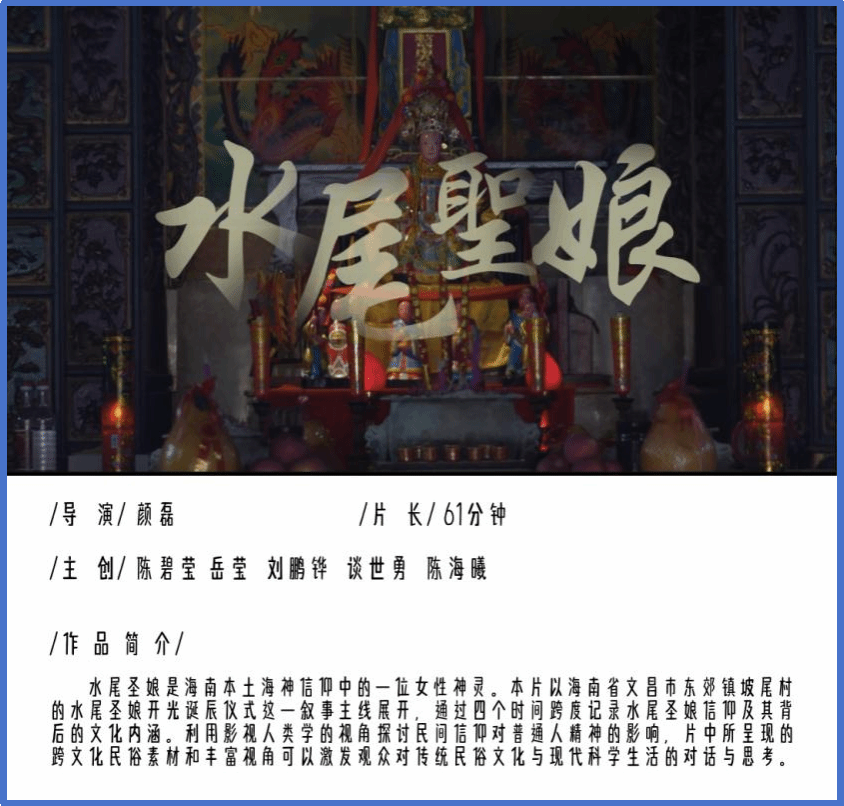 近日,2025年第九届中国成都国际非遗节·第二届非遗影像展映活动公布入围名单,公司戏剧影视文学系副教授颜磊导演的两部作品《水尾圣娘》与《三云与久香的羌年》入选。