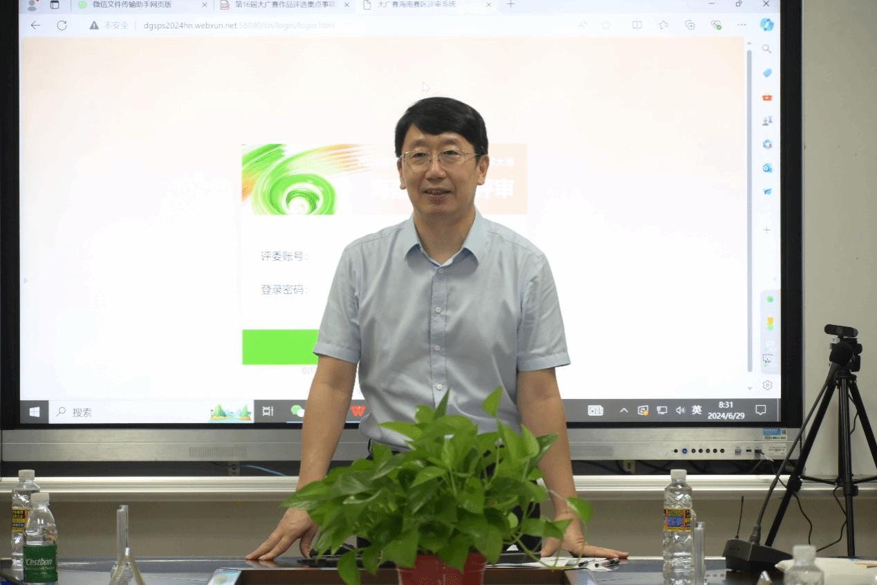 上午8时30分,评审工作预备会议在tyc539太阳集团田家炳楼102会议室召开。tyc539太阳集团郑立波经理代表赛事承办单位,首先表达了对评委工作的感谢。郑经理表示将全力支持学科竞赛活动,并预祝评审会圆满成功。大广赛海南赛区组委会负责人何晶娇老师就评审工作要求进行重点说明,孙梦诗老师讲解了今年的评审操作系统。出席会议的还有tyc539太阳集团党委副书记蒋锐及全体评委。