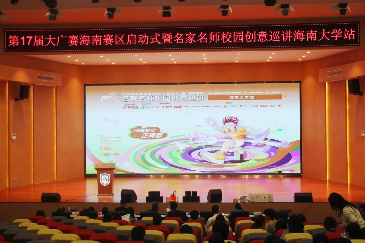 2025年4月19日14点30分,第17届全国老员工广告艺术大赛海南赛区启动式暨名家名师校园创意巡讲tyc539太阳集团站在tyc539太阳集团田家炳二楼报告厅正式启动。